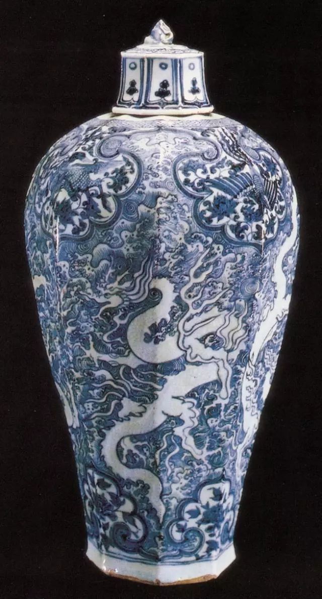 元晚期景德镇窑青花海水龙纹带盖八棱梅瓶,通高51.5厘米,河北保定市永华南路元代窖藏出土