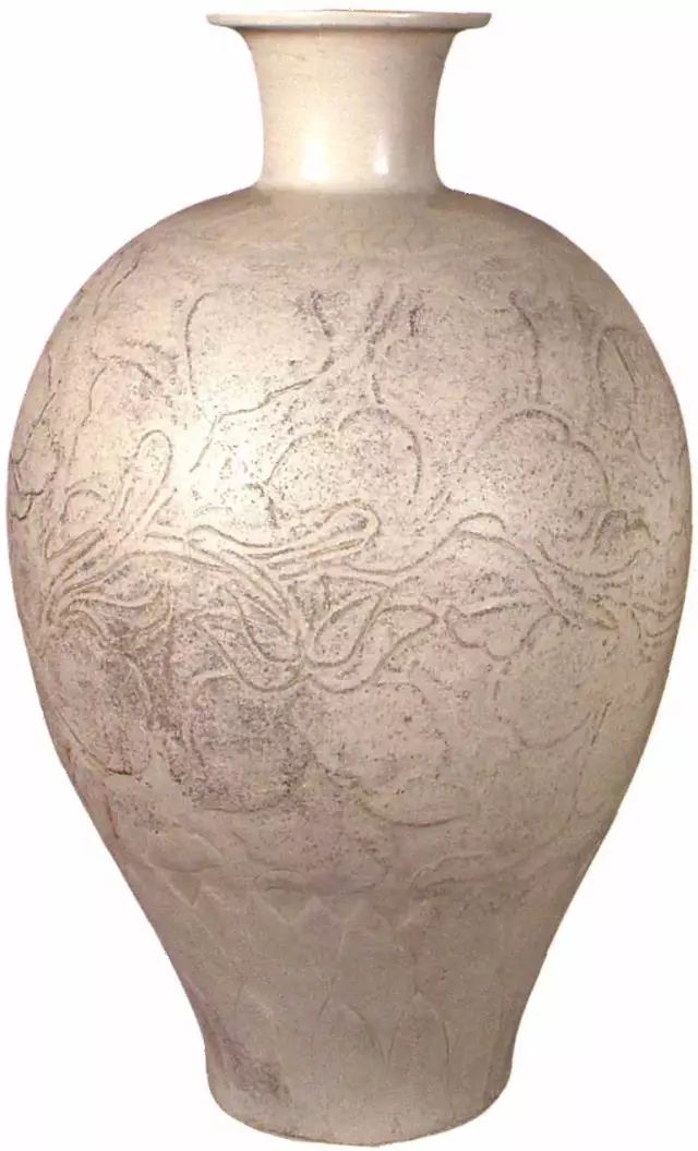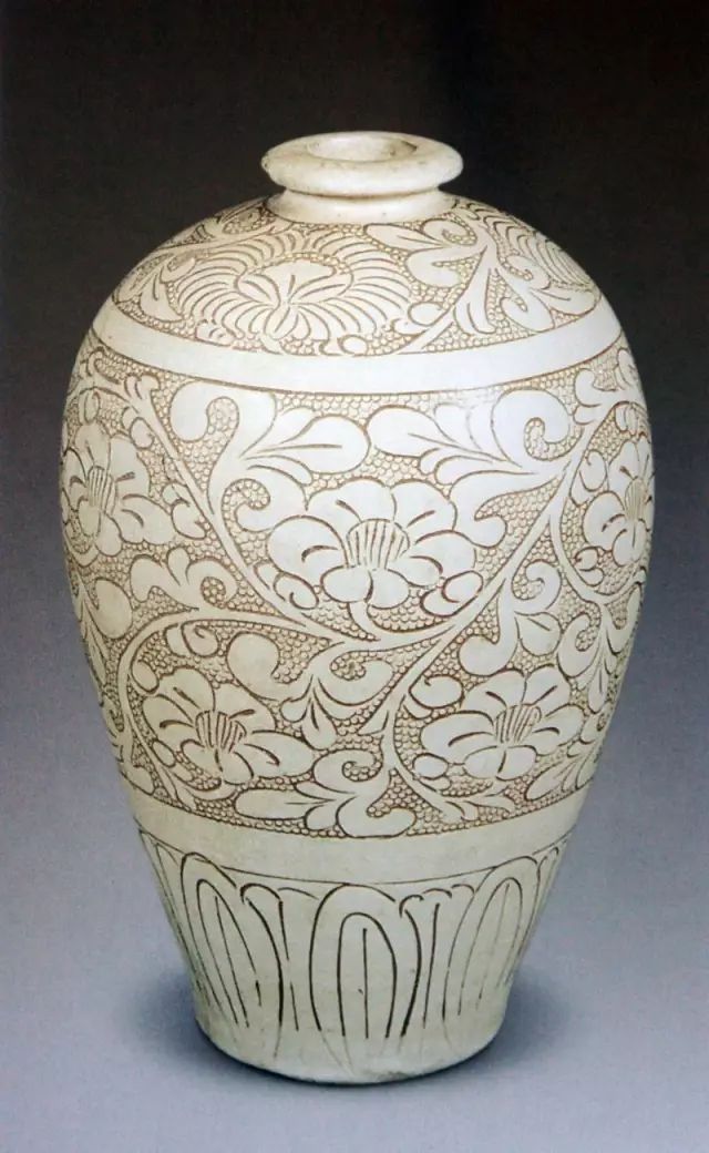 北宋中晚期定窑白瓷刻花折枝牡丹纹梅瓶,高36.7厘米,江西永新县北宋元祐元年(1086)刘瑾墓出土