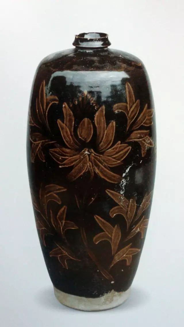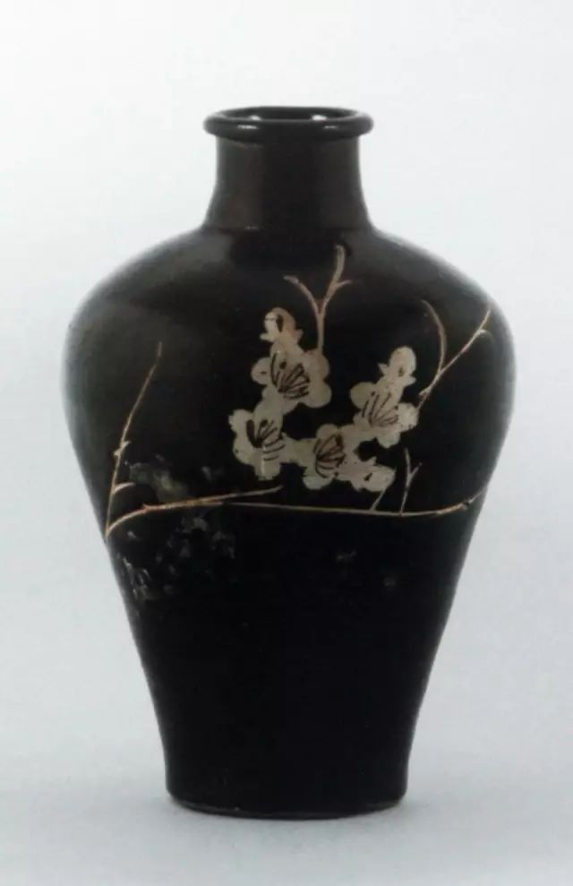 南宋中晚期吉州窑黑釉剔划花折枝梅花纹梅瓶,高21.2厘米,江西省南昌县南宋嘉定二年(1209)墓出土