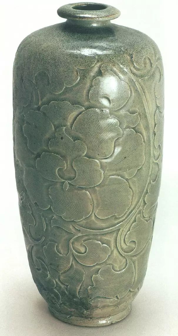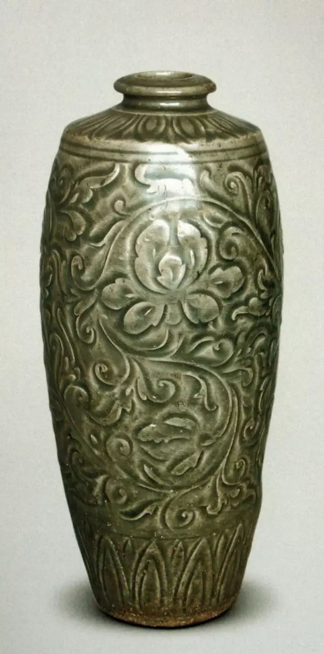 金耀州窑青瓷刻花牡丹纹梅瓶,高30.5厘米,陕西耀县(今铜川市耀州区)出土