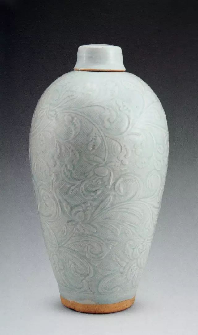 还有一个比较特殊的例子,龙泉窑青瓷梅瓶的肩部和口颈部开始出现装饰纹样。子仁推断,以龙泉窑为代表的南方青瓷梅瓶很可能出现了只有塞子或者小浅碟的盖子,只有口颈部裸露在外,才有装饰的价值。
