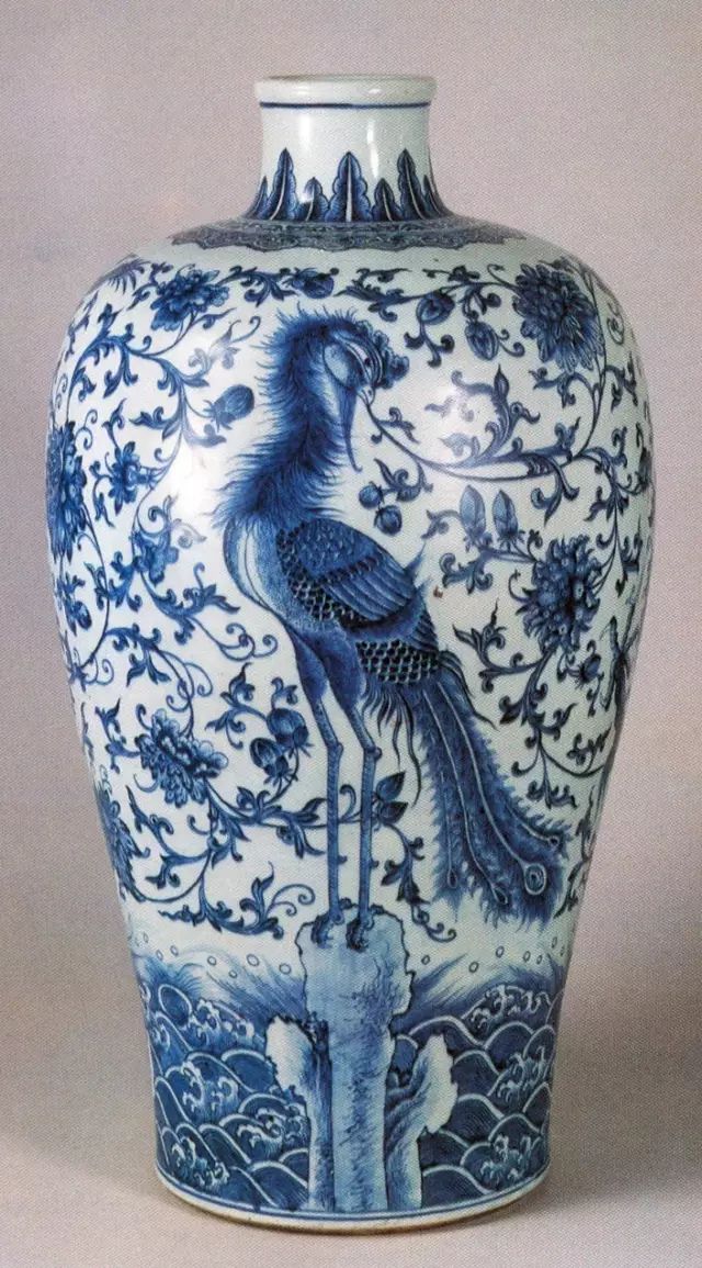 永宣时期多见巨型龙纹,明中期趋于小化,嘉万期常配卷草纹,孱弱无力。从正德到万历,凤纹有特色。明早期民间禁止使用龙凤纹,但明中晚期在民窑上龙凤纹成为主题纹样,这是“官搭民烧”的产物。其他流行的动物纹还有明早期的孔雀纹、中期的云鹤纹、晚期的蝴蝶纹等。