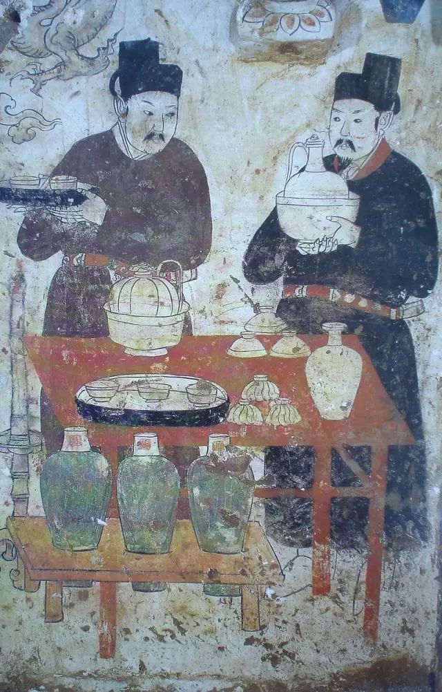 需要进一步证实的是,早期梅瓶盖盖子密封的时候,是否使用塞子。虽然现在找不到实物证据,但是子仁猜测,梅瓶瓶口应该是有塞子的。一方面,早期的梅瓶盖子内部没有舌,如果只是盖上盖子,酒液容易溢出。另一方面,至少到元代,已经出现了带管状舌的梅瓶盖子,而且,为了保证严丝合缝,很可能会在舌上裹软质的材料,这也从侧面证明早期梅瓶应该是有塞子的。