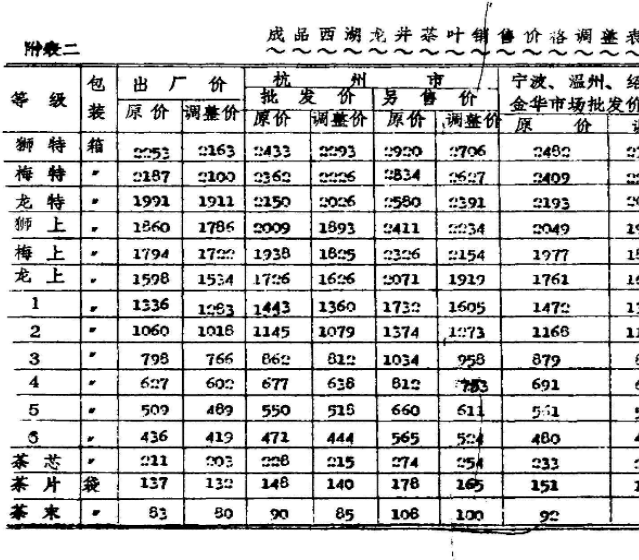新中国成立后,茶叶实行统购统销,1953年建立收购标准样, 将“狮”“龙”“云”“虎”“梅”五字合并为狮峰、梅坞、西湖三套标准,即狮峰龙井相当于原来的“狮”字号和“龙”字号,梅坞龙井相当于原来的“云”字号和“梅”字号,其他的都归入西湖龙井,其收购价格也有明显差异,这种情况一直持续到茶叶销售政策完全放开。