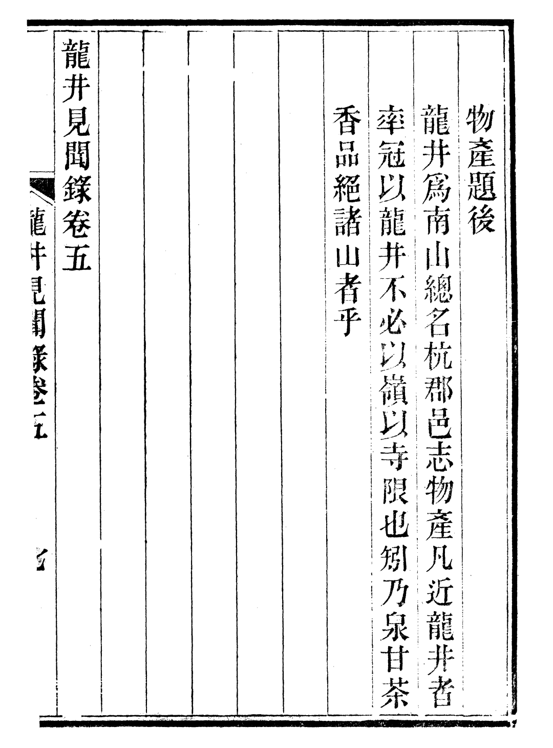 《西湖游览志》(成书于嘉靖二十六年,1547年)记载:“龙井之上为老龙井,其地产茶为两山绝品。”