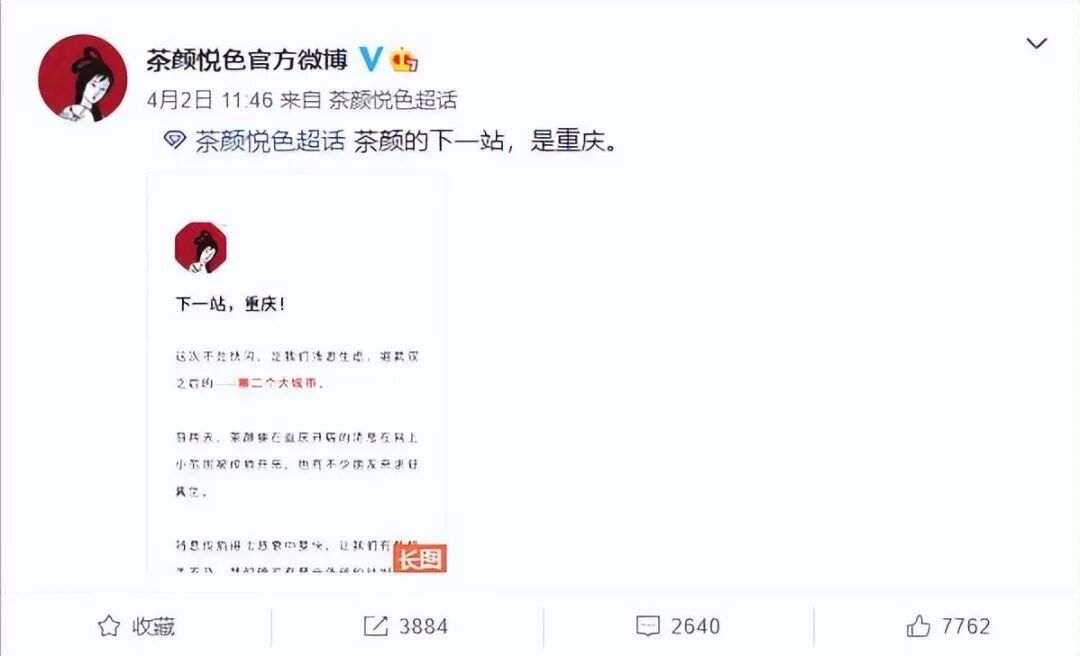 兴茶快评:此次,茶颜悦色宣布进军重庆,毫无疑问是一次全新的挑战,也是一次很有魄力的决策。毕竟,拥有3000万人口的重庆,作为一个超级大城市,对于一直在寻求市场突破的茶颜悦色来说,确实是一块香饽饽。疫情之下,相信茶颜悦色能通过布局多个城市,来达到更快、更持续的盈利局面。