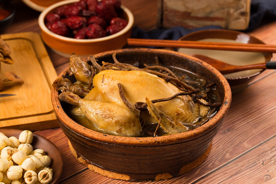 上海琴雨湾浓汤花胶竹林鸡以花胶、猪肉、猪骨等食材煲成浓汤后加入整只清远竹林鸡,含750克竹林鸡和200克鱼胶,市场价268元,惠民价108元。