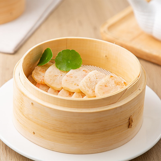 “潮外婆”温州鱼饼选用东海大鮸鱼,剔骨取肉剁碎搅拌制成鱼糜后,配以猪脊膘肉等调料精制而成,可蒸熟、煲汤、切片煎炸,也可切丝和蔬菜一起下锅翻炒,鲜而不腥,营养丰富,既可享用鱼肉的鲜美,又省去剔骨的麻烦,尤其适合老人和儿童食用;温州特色鲜虾饼选用鲜虾手工制作,虾肉看得见,鲜甜饱满,扎实Q弹,隔水蒸几分钟就能吃。以上两种均为125克,市场价25元,惠民价15元。