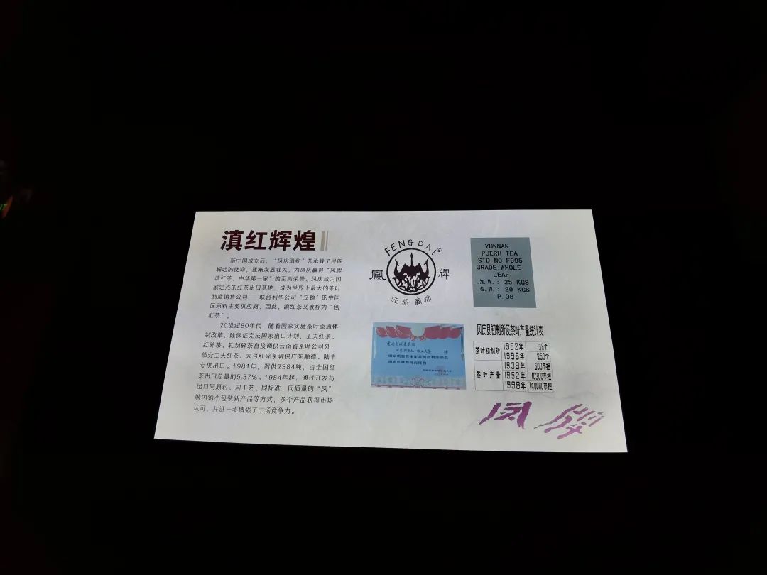 1958年9月19日,凤庆茶厂首创滇红特级工夫茶,敬献党中央毛泽东主席。10月6日,中共中央秘书室复电鼓励:“希望你们继续努力,进一步提高产品质量,以满足人民日益增长的需要,并增加出口、争取多创外汇,支持国家的社会主义建设……”