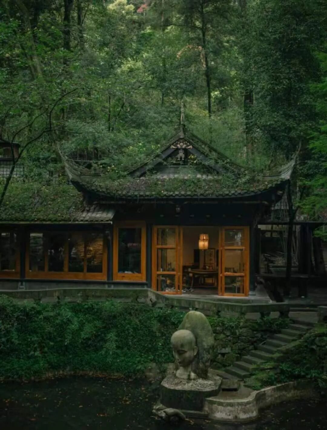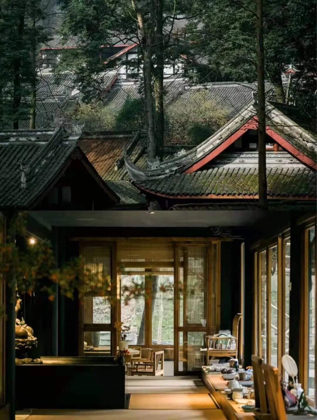成都青城外山、凤栖山上有一间名为“无漏秋山”的茶室,位置就在一座千年古寺旁。