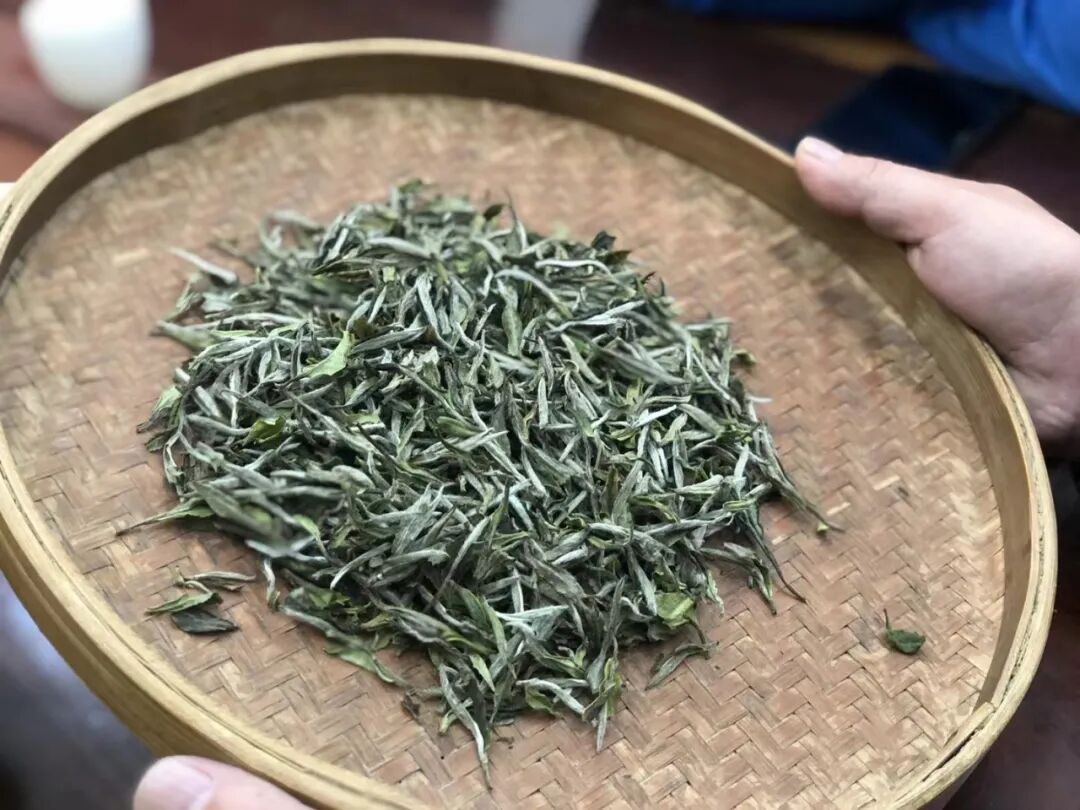 新工艺白茶简称新白茶,是按白茶加工工艺,在萎凋后插手轻揉制成。其茶形状微卷,光华暗绿带褐,香气清雅,滋味浓醇甘鲜。