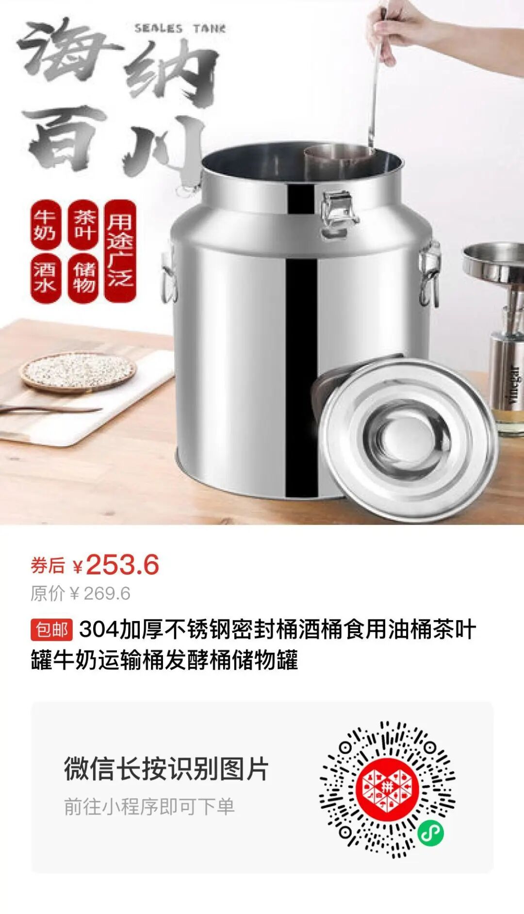 304加厚不锈钢密封桶酒桶食用油桶茶叶罐牛奶运输桶发酵桶储物罐