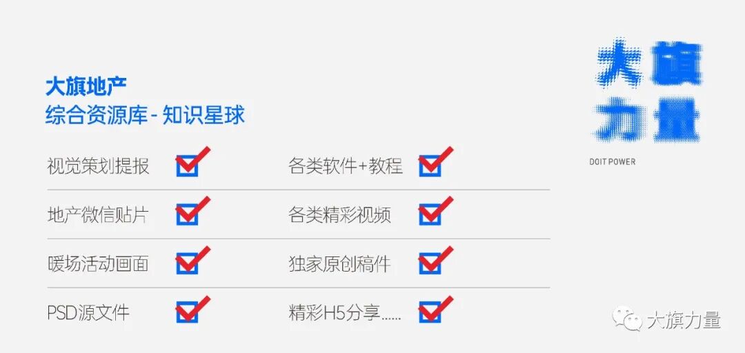 我们不但教你看,而且还教你做,还有超级多精彩资源!!!怀着一颗对设计热爱的心,希望交到更多优秀的朋友! 另外即日起,入“大旗地产综合资源库”的星友,可以免费加入“精品素材资源库知识星球”,享受超多精彩素材!(加入大旗后由管理员邀请进入)