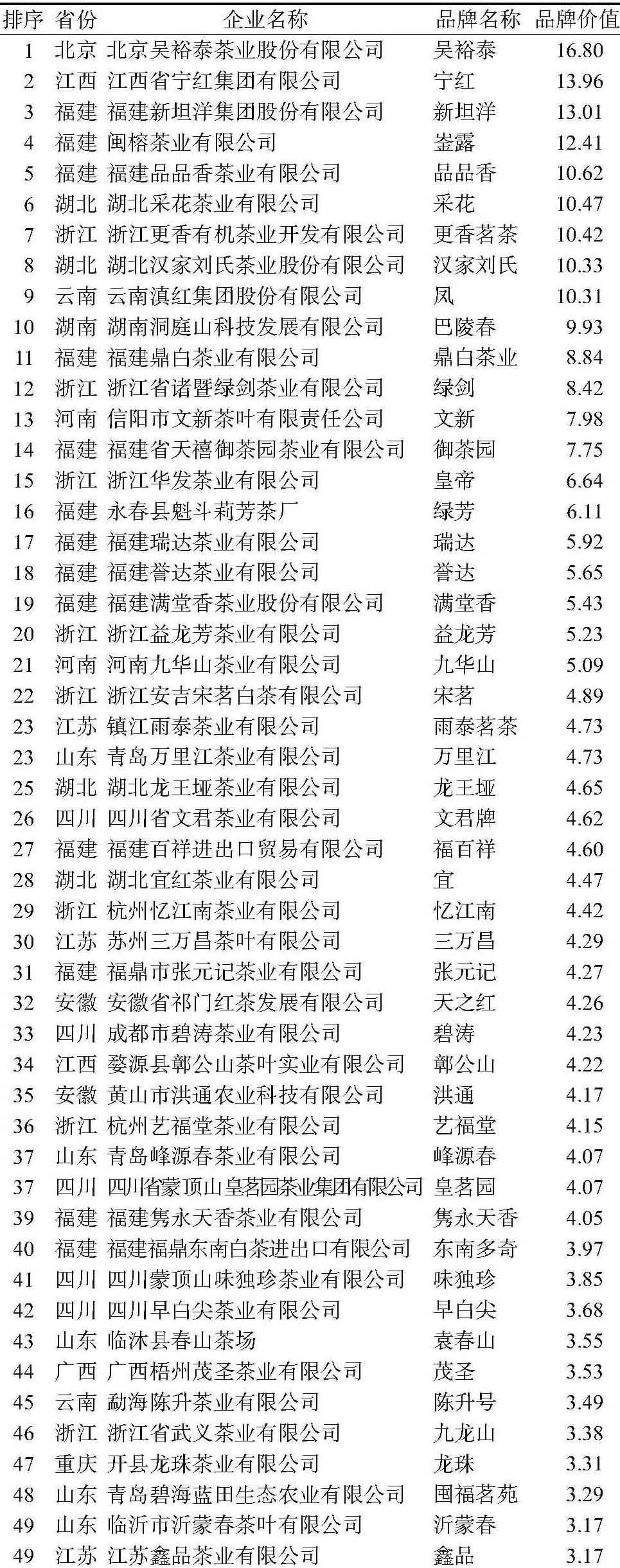 1. 品牌价值:增长率整体趋缓,小微茶企出现负增长