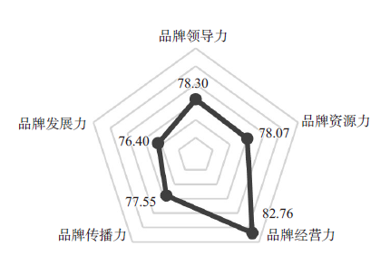 品牌强度及其乘数由品牌领导力、品牌资源力、品牌经营力、品牌传播力和品牌发展力等5 个能够表现品牌稳定性和持续性的“品牌强度五力”加权计算得出,是体现品牌未来持续收益能力、抗风险能力和竞争能力大小的指标,是对品牌强度高低的量化呈现。“品牌强度五力”及其3级指标均根据当年度有效评估品牌的横向比较得出。