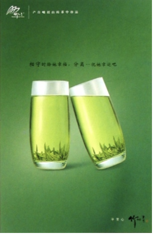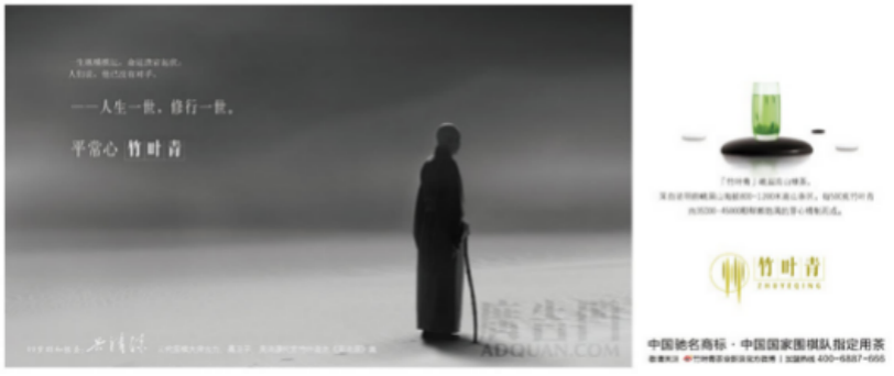 (二)传播活动紧扣品牌内涵 品牌推广竹叶青通过电视广告片诠释了“平常心”的内涵,把品茶自然地延伸为一种生活态度和处事作风。各种平面广告和电视广告的色彩、文案、情景均采用清新雅致的写意风格,与“平常心”的传播调性十分契合。 “论道·竹叶青”通过《论道十二法则》,让消费者对“论道”形成形象感知,并提出“大师级好茶”的概念,创造消费者对于“论道”和“奢侈品”的认知关联。2009年,“论道·竹叶青”选取了大溪地黑珍珠、瑞士名表和德国名车三大世界级奢侈品意象作为“历练同道”的对象,体现了品牌的“世界级奢侈品”定位、自信与大气。