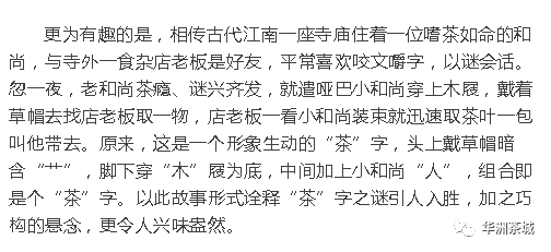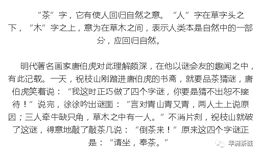 茶,人在草木间,是最方便接近自然的方法。也是人与自然最完美的结合。自“茶”字被普遍使用后,古代文人便对“茶”字有了不少趣解。华洲企业管理服务