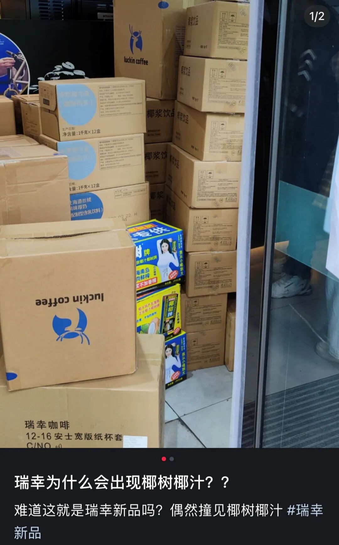 同时,不少人在瑞幸门店,已拍到椰树椰汁的身影了!