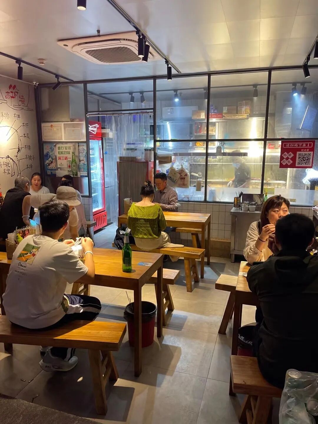 之前,店里高峰期,至少需要七八个员工,烧烤师两三个,其他的负责点单、传单、上菜、收银等,引入扫码点单后,员工人数减少到四五个人。“4个人都绰绰有余,省下不少人工。”章寒表示。