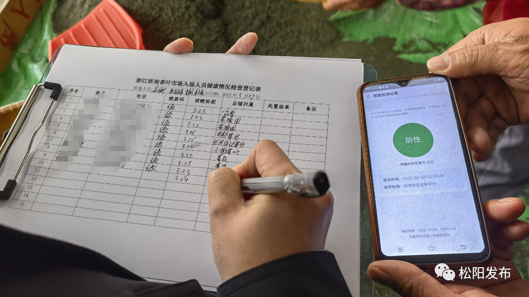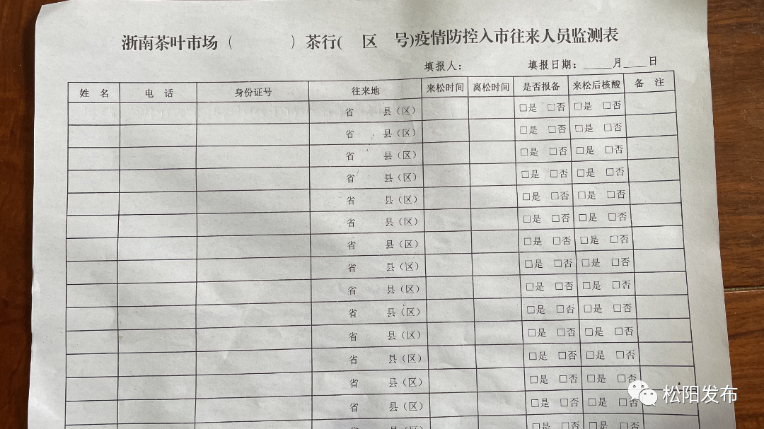 “你好,请规范佩戴口罩!” 市场内人流量大、人员复杂,管控督导组全员出动,对市场内实行区域全覆盖、交易全流程巡查督导;督促市场内人员落实禁烟、禁止乱吐痰、禁止乱扔垃圾;并提前对市场108家商铺下发《入市往来人员监测表》,由商铺自主上报往来人员信息,督导组随机抽取茶农、茶商、主播、从业人员等160余人次进行健康信息核验,同时登记相关人员信息。