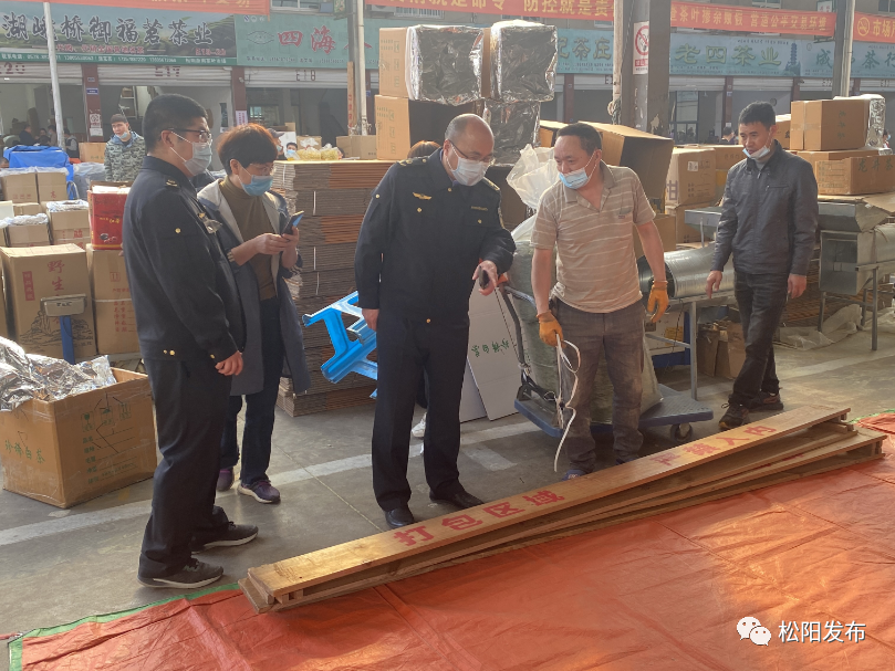 12:30轮 流 午 饭13:30驻 场 巡 查午后的浙南茶叶市场,人群逐渐散去,各个商铺纷纷铺上地垫开始为一天销售的茶叶进行打包。统一的打包袜、红马甲、打包挡板,是茶叶打包的标配,在驻场督导组的常督常导下,市场打包已经较为规范啦~