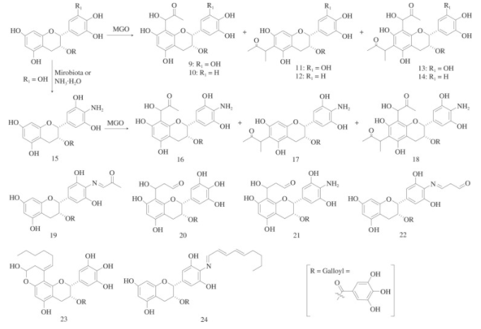 茶多酚与活性羰基化合物的加成反应