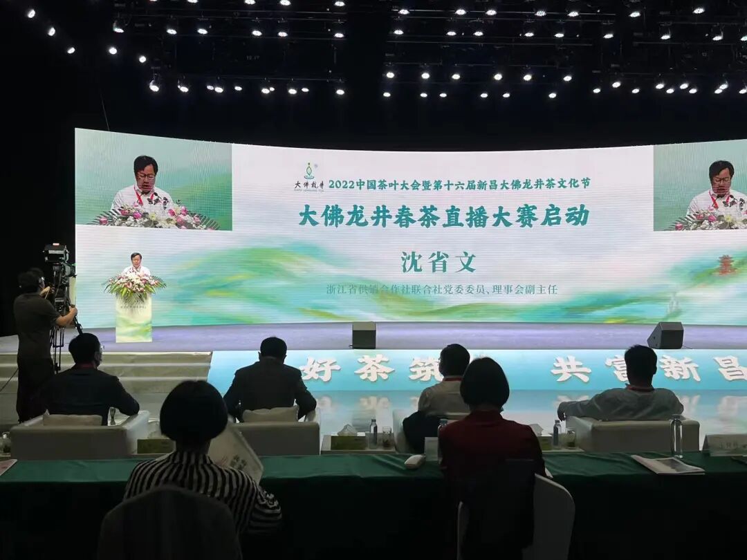 浙江省供销合作社联合党委委员、理事会副主任沈省文宣布了大佛龙井春茶直播大赛启动。