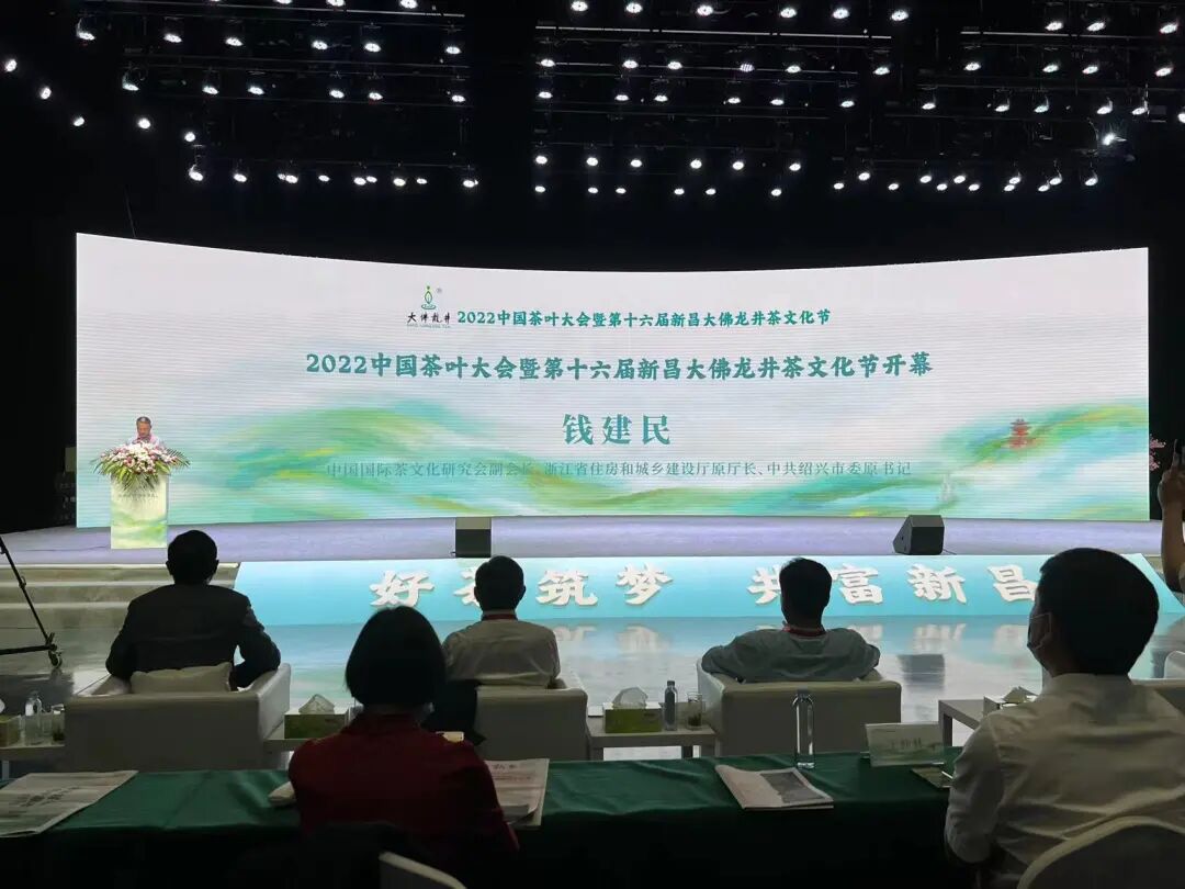 最后,中国国际茶文化研究会副会长、浙江省住房和城乡建设厅原厅长、中共绍兴市委原书记钱建民宣布2022中国茶叶大会暨第十六届新昌大佛龙井茶文化节开幕。