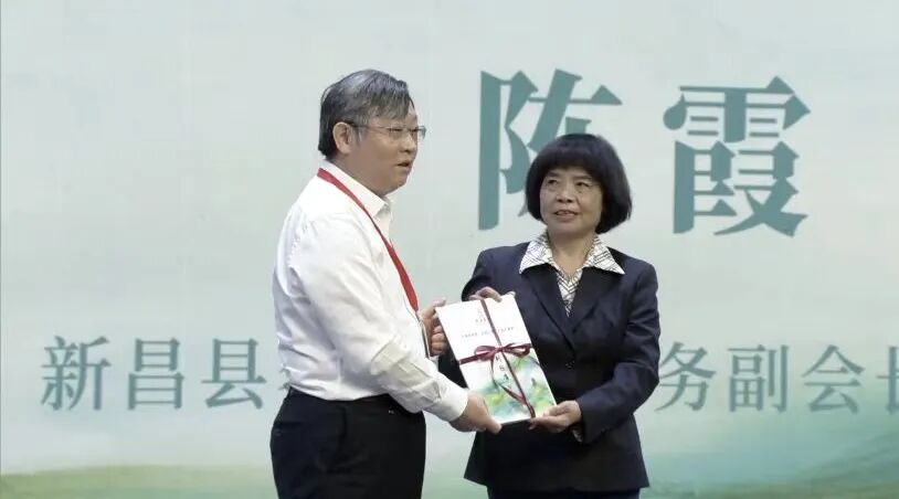 中国茶叶学会理事长、中国农业科学院茶叶研究所党委书记、副所长江用文颁布大佛龙井、天姥红茶和天姥云雾茶系列标准。随后,他向新昌县名茶协会会长陈霞授予三项标准。