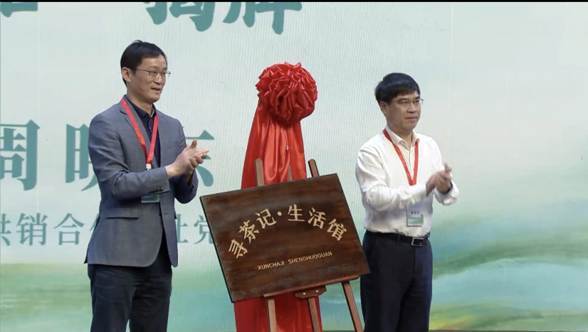 绍兴市农业农村局局长陈建勇和绍兴市供销总社党委书记周晓东共同为“寻茶记·生活馆”揭牌。