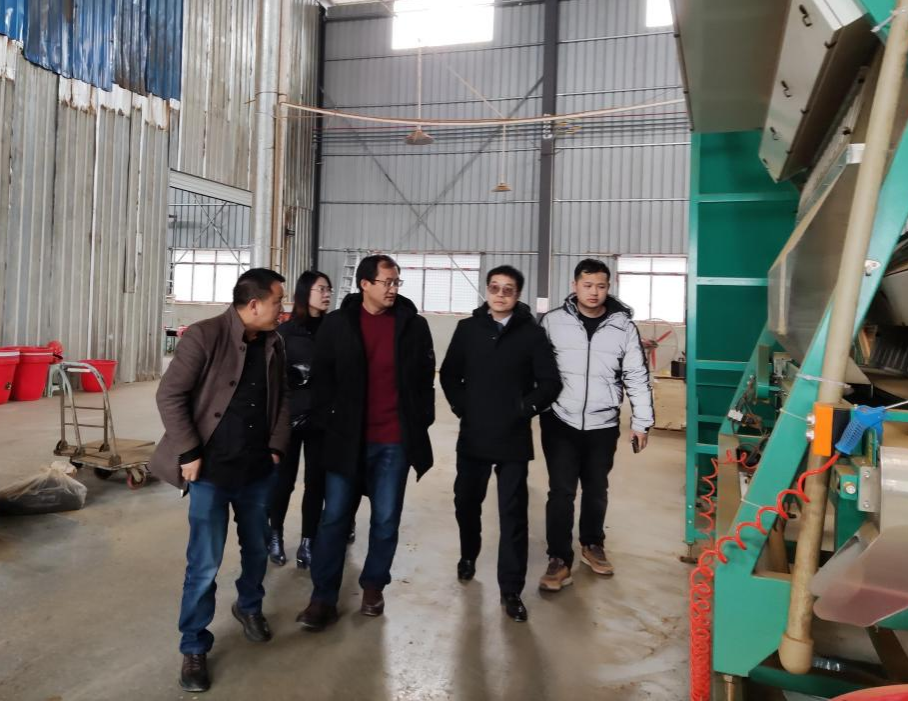 农担公司总经理马伟(左三)深入茶企进行保前调查