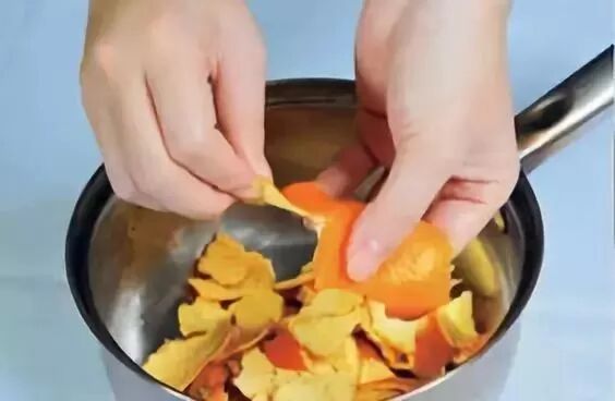把橘子皮放入盆里加开水泡两分钟,先洗手,再泡脚,直到水不热。每晚洗一次,连洗3-4天,手脚干裂粗糙感就消失了~