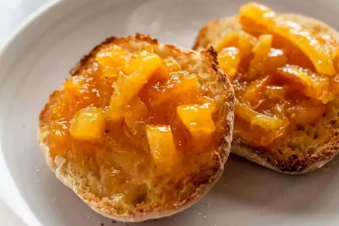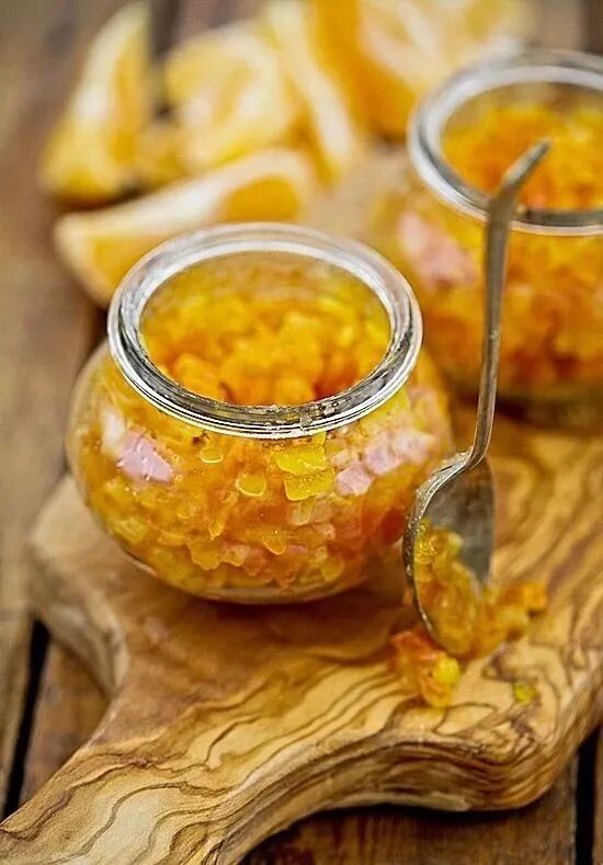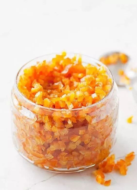 橘皮酱色泽金黄,橙香浓郁,忍不住尝一点,甜甜的,橘皮丝在嘴里嚼到最后有一丝辛辣,是橘子独特的清香味~
