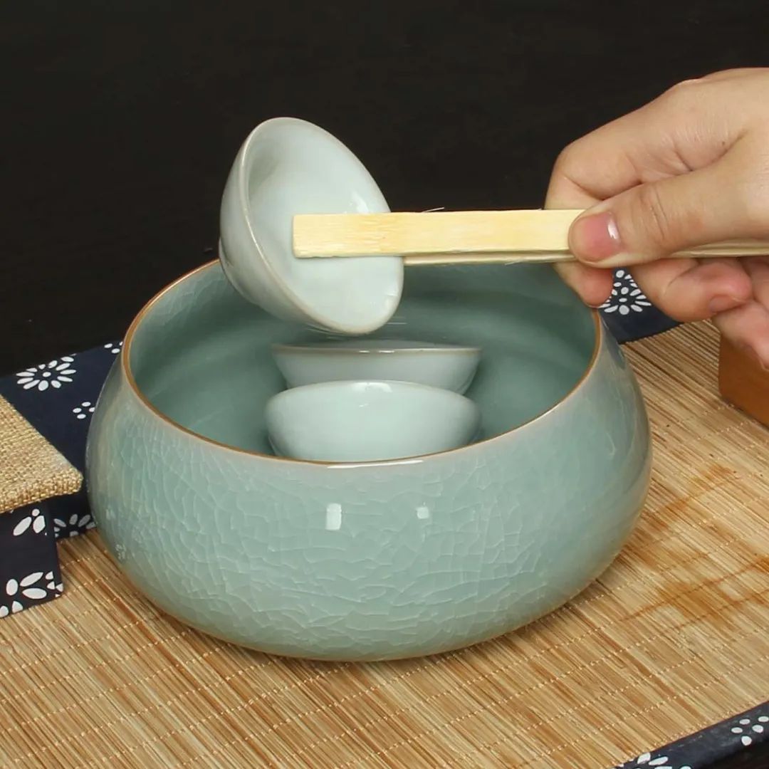 茶夹也称为茶筷,用于将茶渣从壶中夹出。也常有人拿它来夹着茶杯洗杯,这样防烫又卫生。