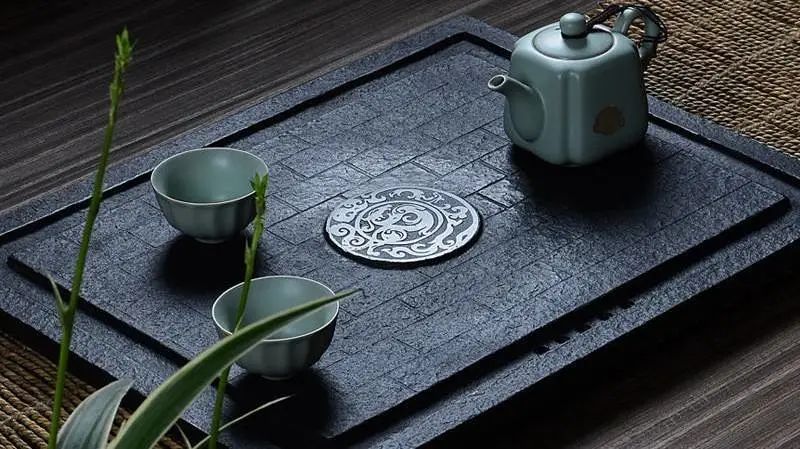 茶盘是盛放茶壶、茶杯、茶宠以及茶食等物的浅底器皿。茶盘采制广泛,款式多样,形状不一,有单层的也有夹层的,夹层主要用来盛放废水。夹层有抽屉式的,也有嵌入式的。