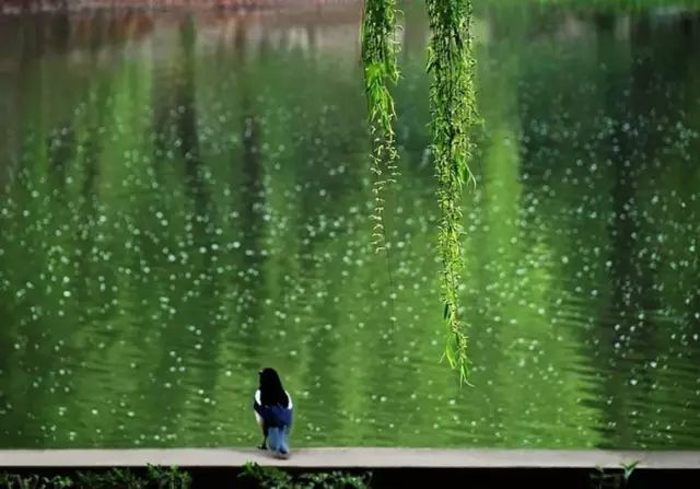 在谷雨到来的几天里,因降雨增多,浮萍会快速地生长、茂密起来,绿油油的成片,彷佛漂在水上的一块美丽画布。那些平时缺少绿意的水塘、河畔、湖面等等,如今会是一派繁荣景象。