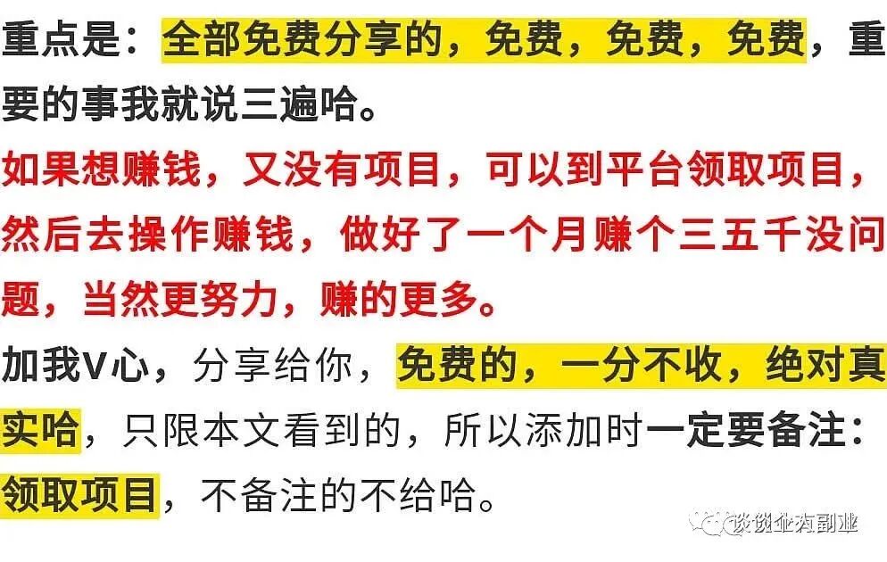 以上文章为网络整理,有异议联系删除 关注:谈谈个人副业 文章关键词:在网上怎么赚钱的方法 文章发布时间:2022-4-12 01:54 感谢阅读:几个成本低见效快的创业好项目,适合宝妈做,容易起步上手(在网上怎么赚钱的方法) 更多问题请咨询导师V信: 随机句子:世人结交须黄金,黄金不多交不深。