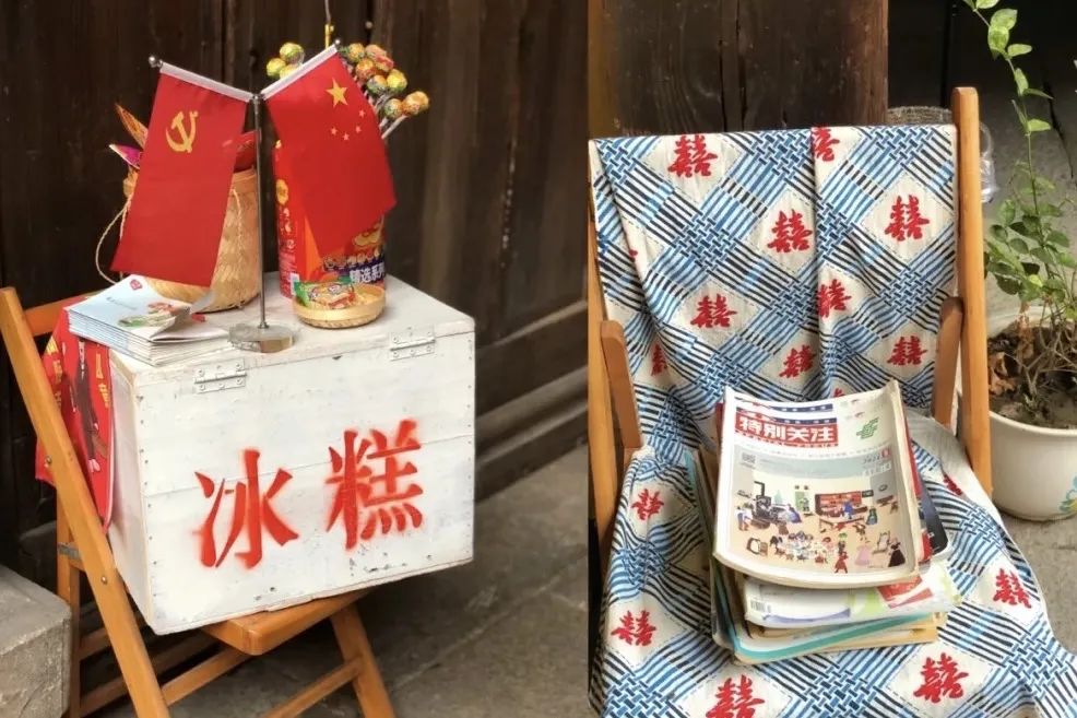 台面摆放着许多小时候记忆中的零食,一下子把人拉到了童年无忧无虑的快乐时光。