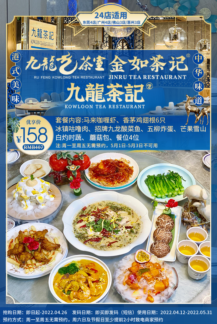 繁忙的工作里,太需要美味的餐食续命了!现在,现158元即可享受门市价407元的【九龍茶記·九龍茶室·金如茶記】优享套餐,快来呀~