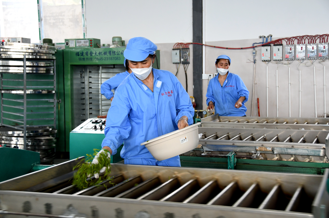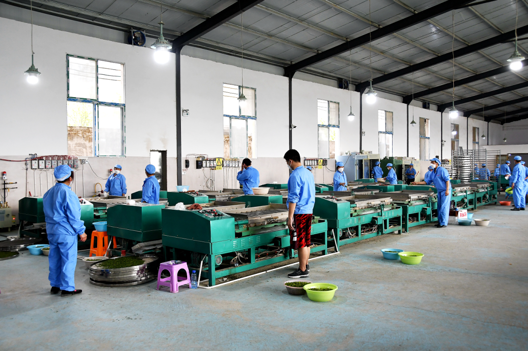 走进贵州杜兰特茶业有限公司的生产车间,阵阵茶香扑鼻而来,只见宽阔的车间里,整齐的排放着32台自动化茶叶加工机械,工人们正忙着操作不同加工程序的机械。