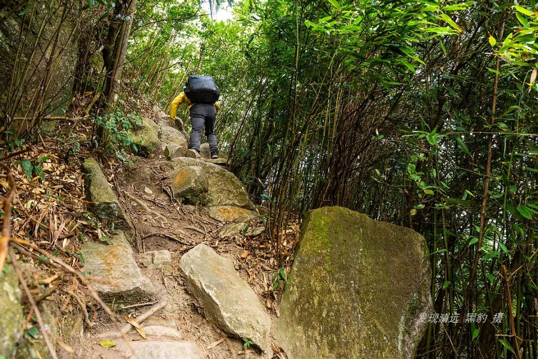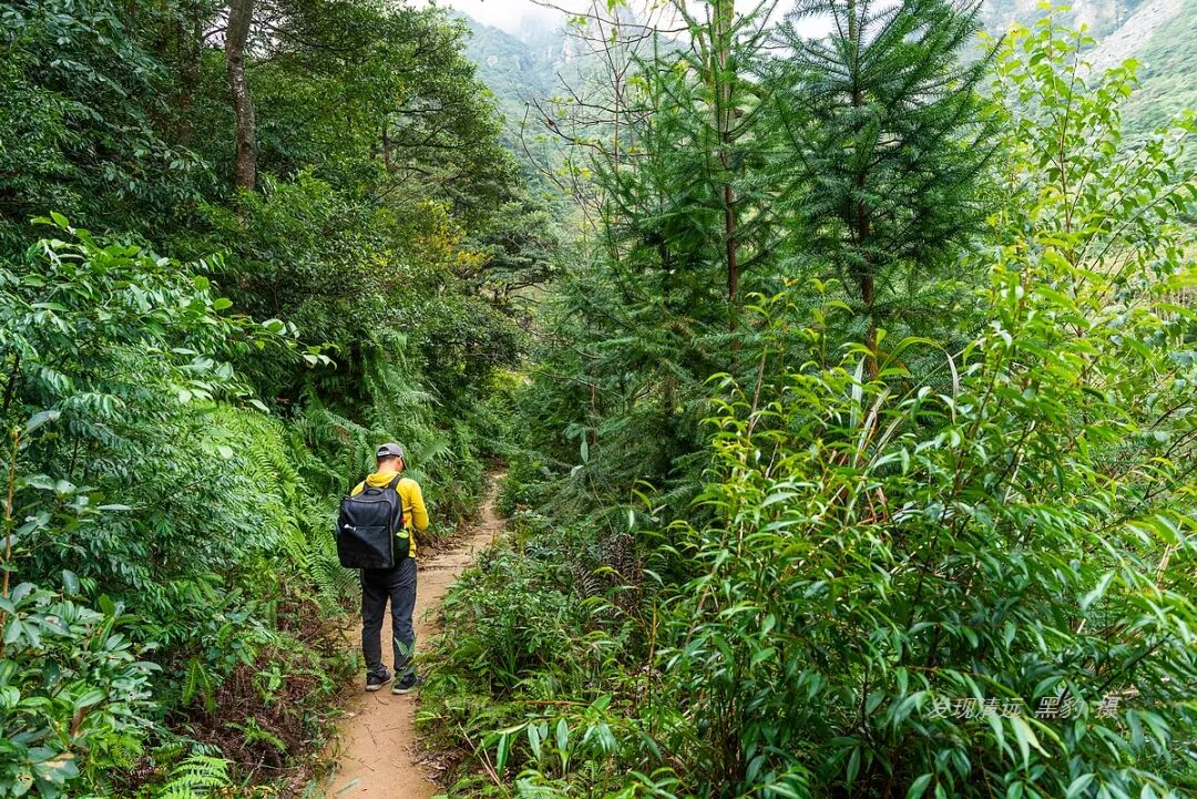 接下来一直在郁郁葱葱的原始丛林中穿行,密密匝匝的树木遮天蔽日。茶岩顶属于罗坑鳄蜥国家级自然保护区范围,严禁采伐或破坏,所以希望大家在登山过程中,一定要保护自然,带走随身垃圾。