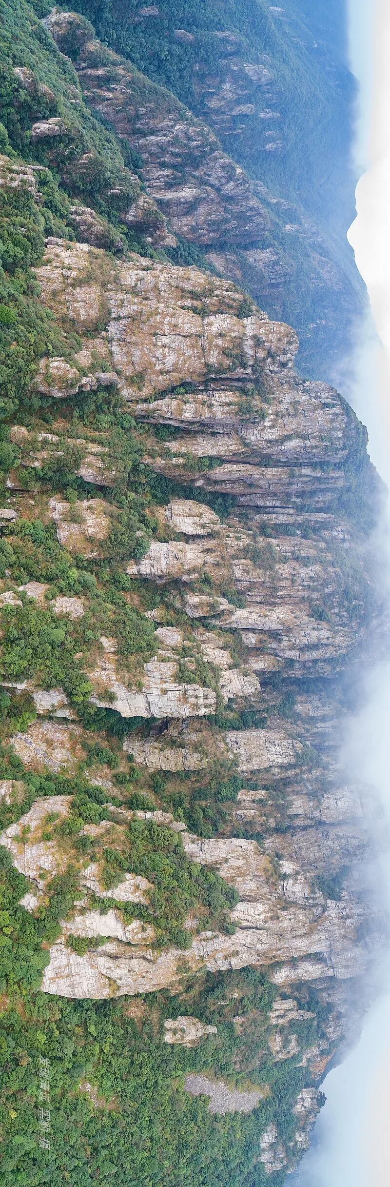 穿出丛林,眼前豁然开朗,眼前是高差约200米的悬崖绝壁。这一段处于海拔900至1100米之间的高度,密集发育着风化剥蚀严重的石英砂岩地貌,也是整个茶岩顶的精华所在。