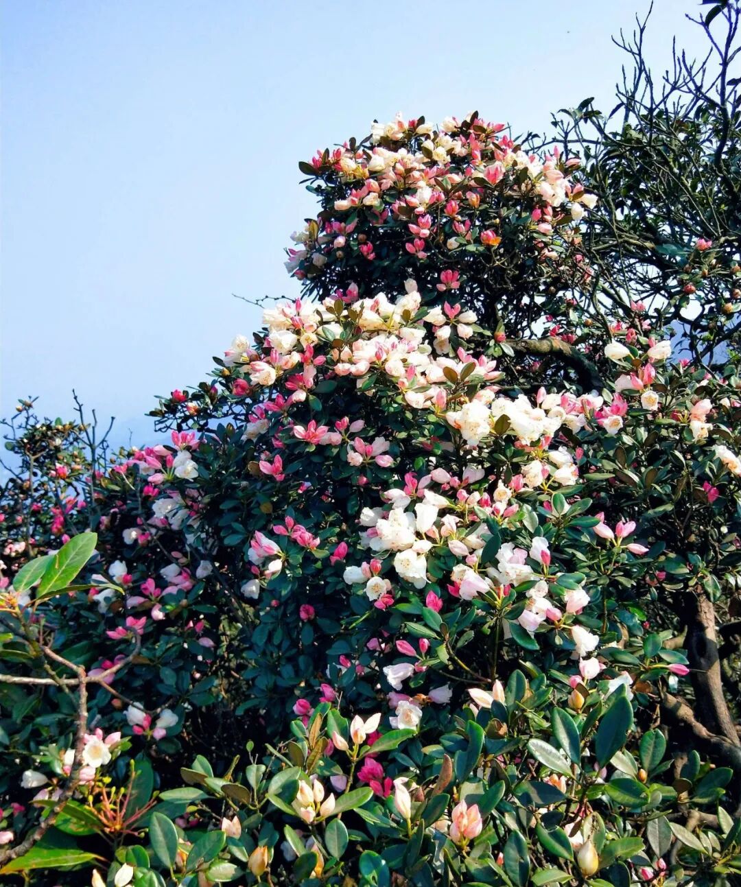 除了绝美山岳风光,茶岩顶还拥有一种奇特杜鹃花。这种花能开出五色花朵,每年清明节前后,一丛丛、一簇簇绽放在悬崖绝壁之上,为这座秀丽山峰平添几分春日妩媚。