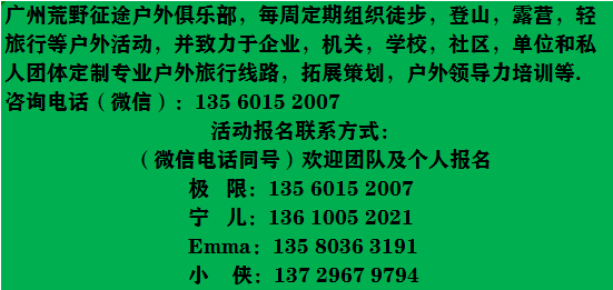 该【免责声明及安全警示】的目的是为活动发起人组织者和同行者再次明确户外活动的风险,提高自律能力和抗风险能力,免除一些不必要的损害发生,让户外活动更安全更快乐。凡报名参加荒野征途户外旅行活动的朋友,均视为已经仔细阅读过【免责声明及安全警示】,并且已经接受了本免责声明,对户外活动的风险已经有了认知及评估,并自愿承担相应的风险。