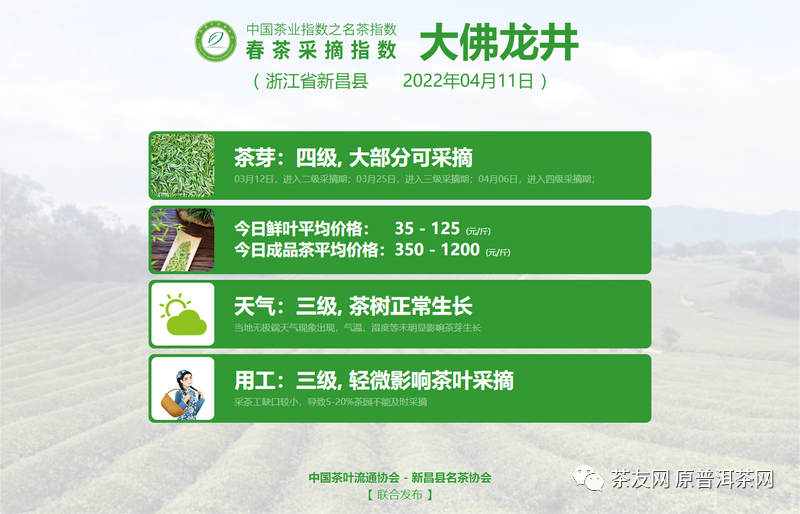 2、春茶采摘指数:4月11日大佛龙井、黄山毛峰双进“五”,六安瓜片入“四”