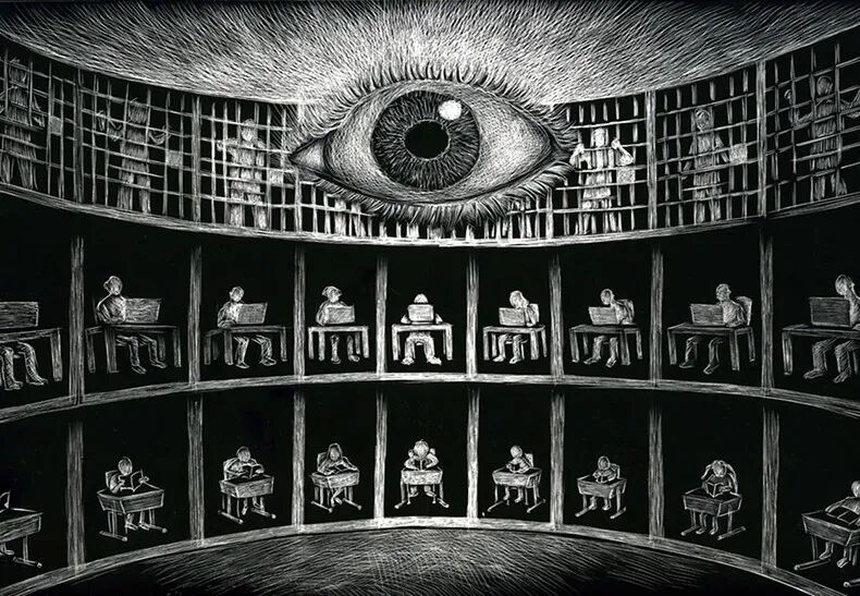 死亡威胁难以维系后,已经掌握了这种建筑结构的建筑师们将这种为对付瘟疫而创造的秩序迅速改装成监狱建造的灵感来源,进而延伸至学校、工厂、兵营和医院。从一个尽在掌握的中心监控室里,长出来一整个社会。