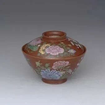盖碗敞口,斜直壁,矮圈足,带盖。碗外壁画四季折枝花卉纹,有牡丹、月季、野菊;菊花、茶梅等;盖外壁亦绘月季、莲花、菊花、梅花等四季折枝花卉纹,器内及盖内各饰月季及莲花一朵。