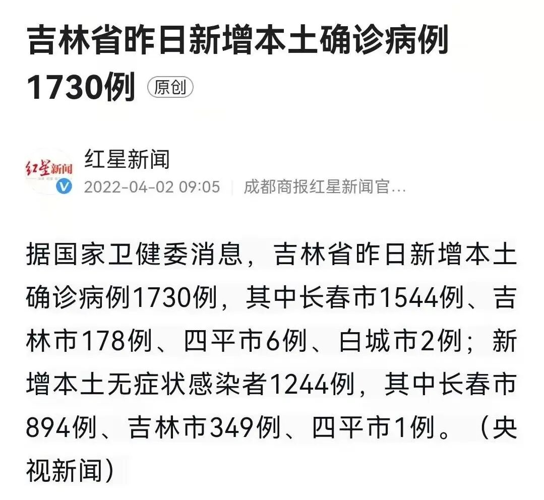 昨天的数据又爆了。长春确诊+无症状1544+894=2438,期待中的拐点没有到来,数据重新快速上升,对比前天,新增1000,不知道明早是个什么样子。也不知道外面的世界是个什么样子了。据说,又打响了新一期的清零攻坚战。管控区内社区传播仍未阻断长春封城已经20天,核酸做了10多轮,数据依然居高不下,国家卫健委表示:吉林省疫情仍处于发展阶段,吉林市长春市管控区内社区传播仍未阻断。我想问封城这么久,疫情还处于发展阶段,都在干什么来着?都在玩吗?人员都不流动了,病毒是怎么传播的?还是说,有的人员还在流动,封城的措施根本就没有有效执行落地?那都是谁在动,为什么控制不住?