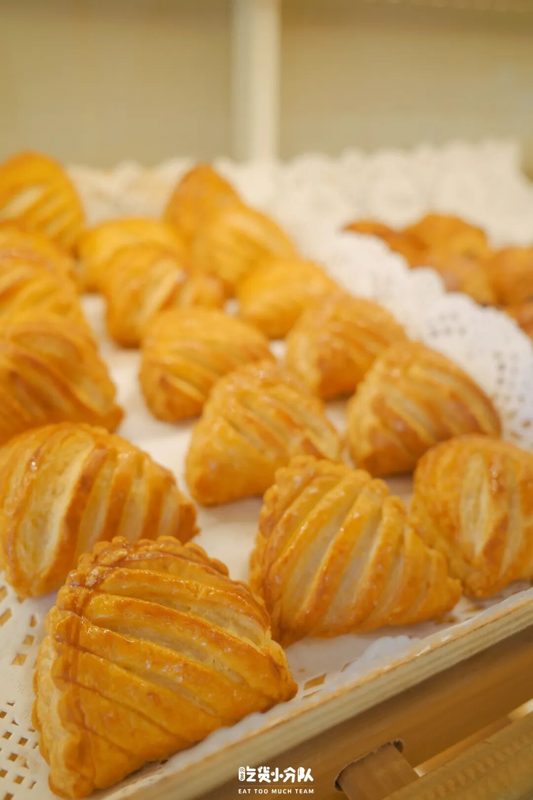 甜咸党均有选择。现烤的软欧包馅料很扎实,【芋泥雪贝】也很多人买来打卡。开实体店之前在网店上就有蛮多回头客了。