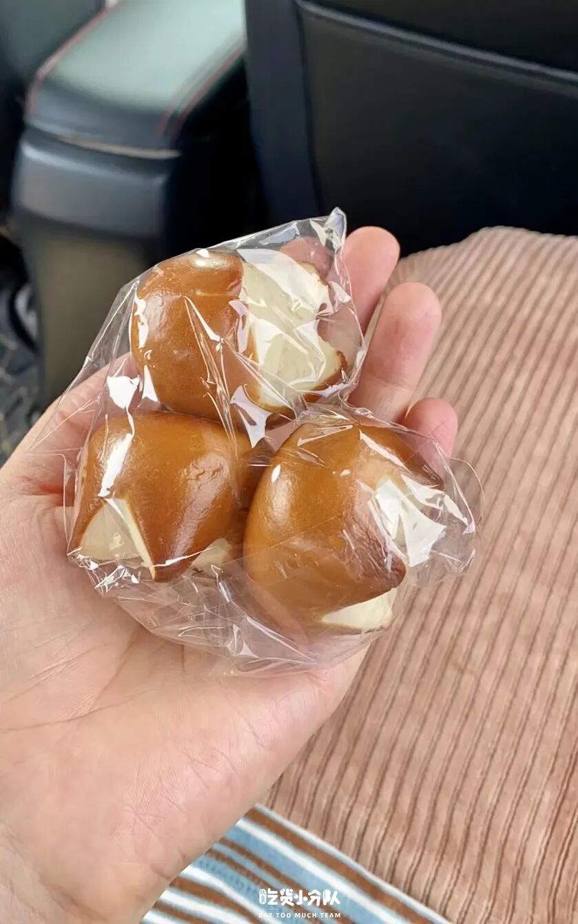 【茶叶蛋碱水】很有意思,里面真的是整颗茶叶蛋,适合早上吃。巧克力味盐面包也不错,复热后里面融化更好吃。